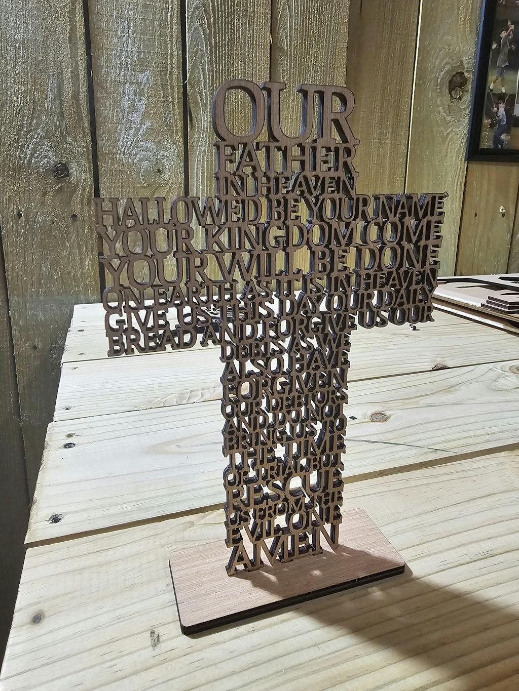 Vector files for laser cutting cross with text of the Lord's prayer (Our Father). Christian or Catholic decor for home, community centers and more. Great design for religious events like baptism (christening), first communion or confirmation; as centerpiece, decor, favor (bomboniere) or gift.