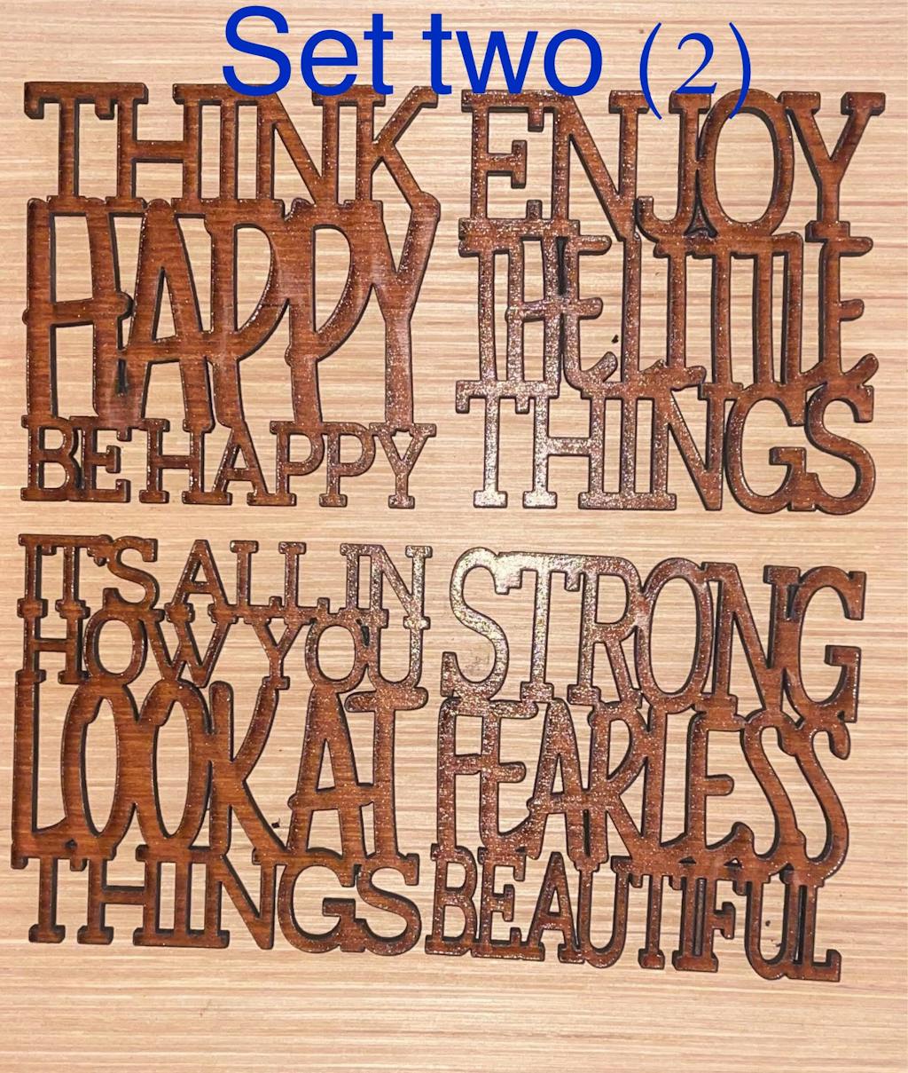Vector files for laser cutting 10 different coasters with positive themed quotes. Great design for coffee or wine coasters.