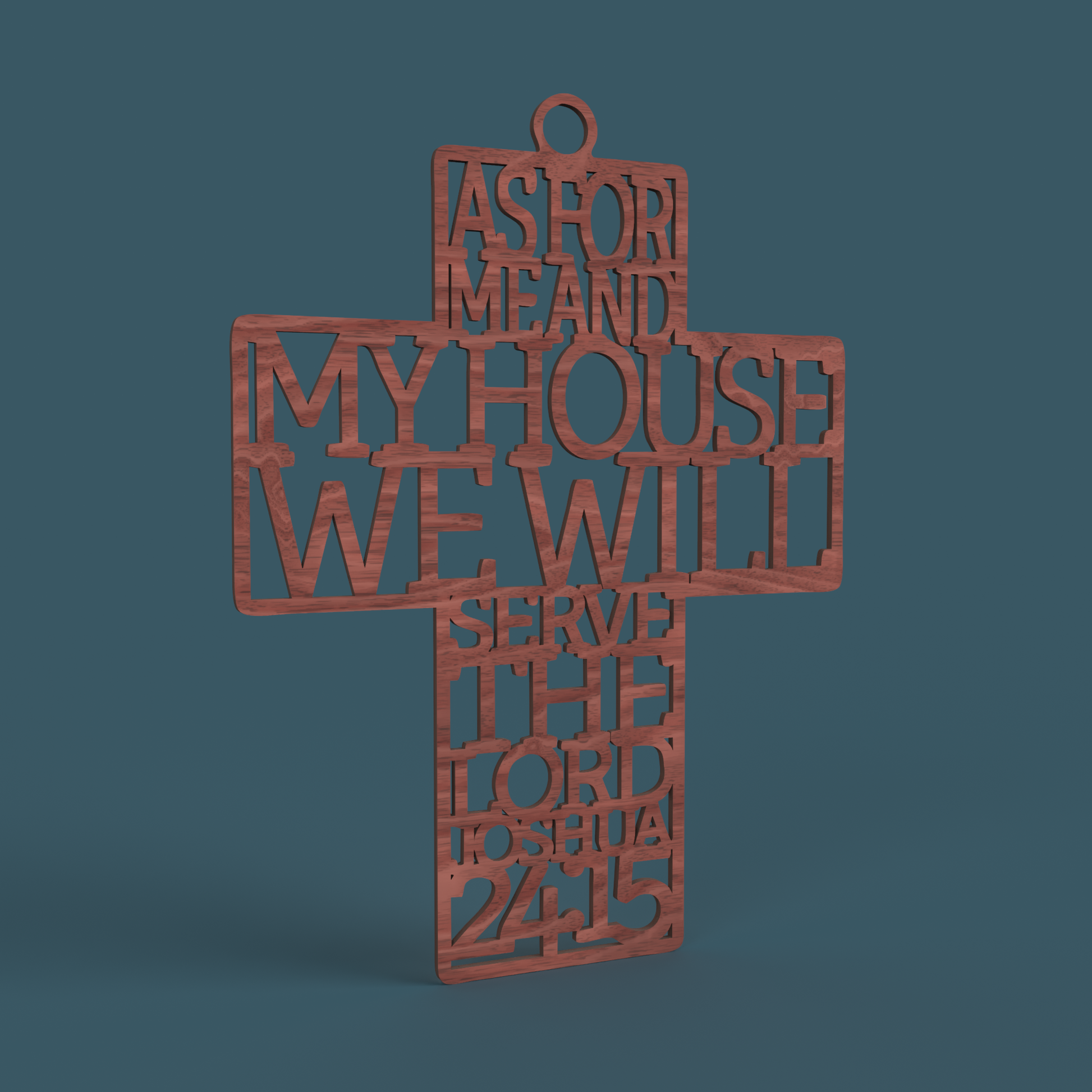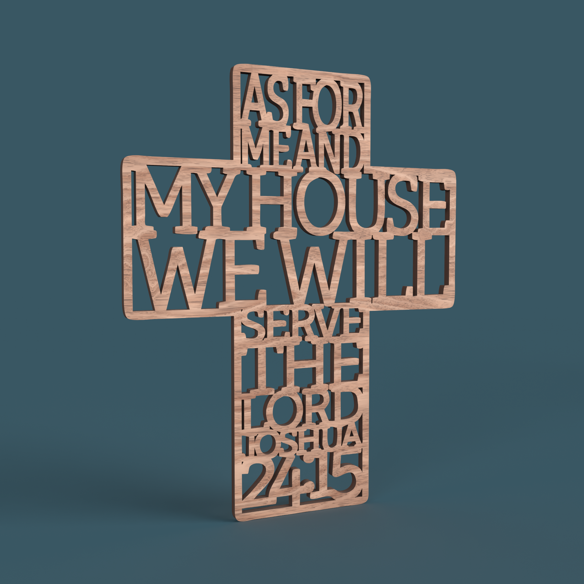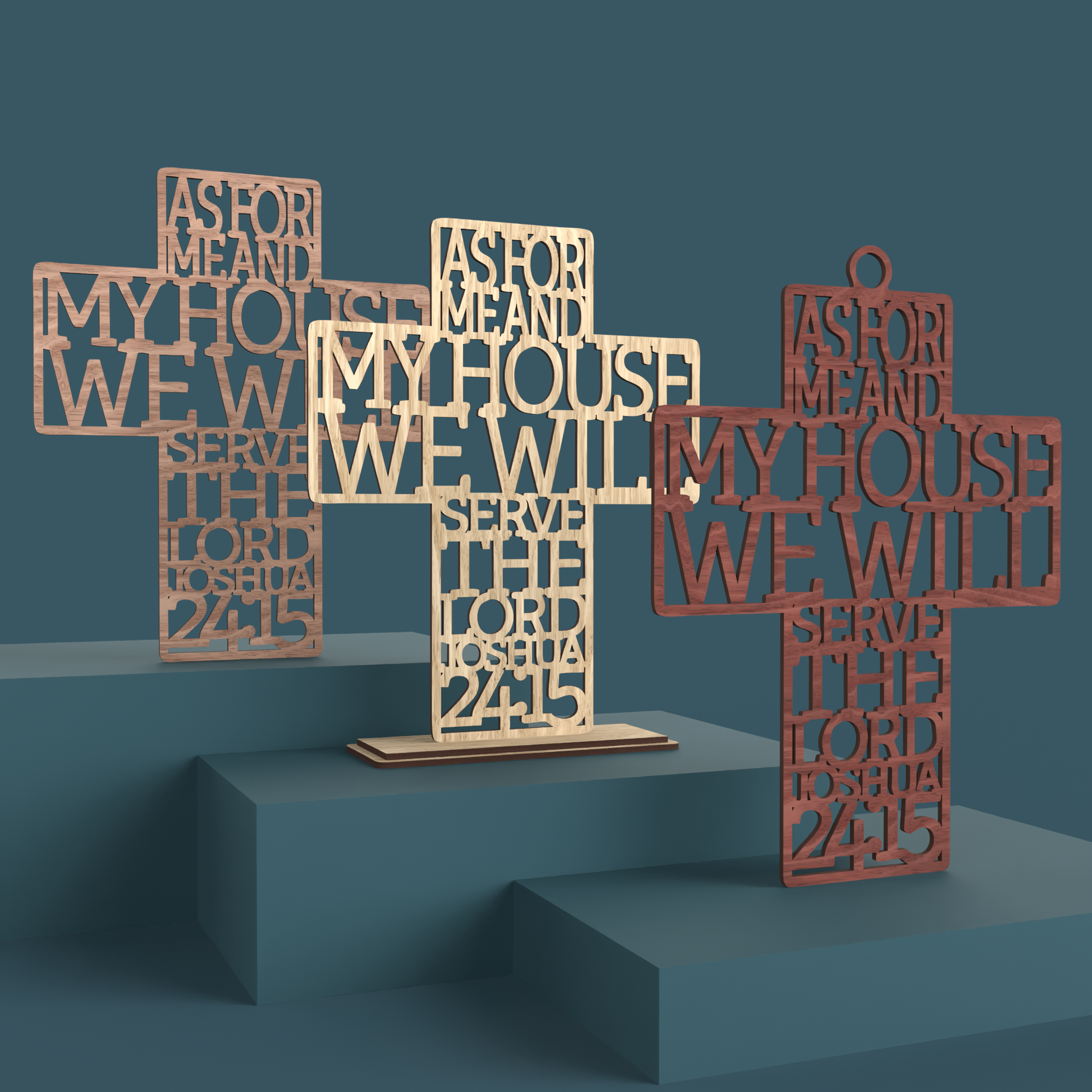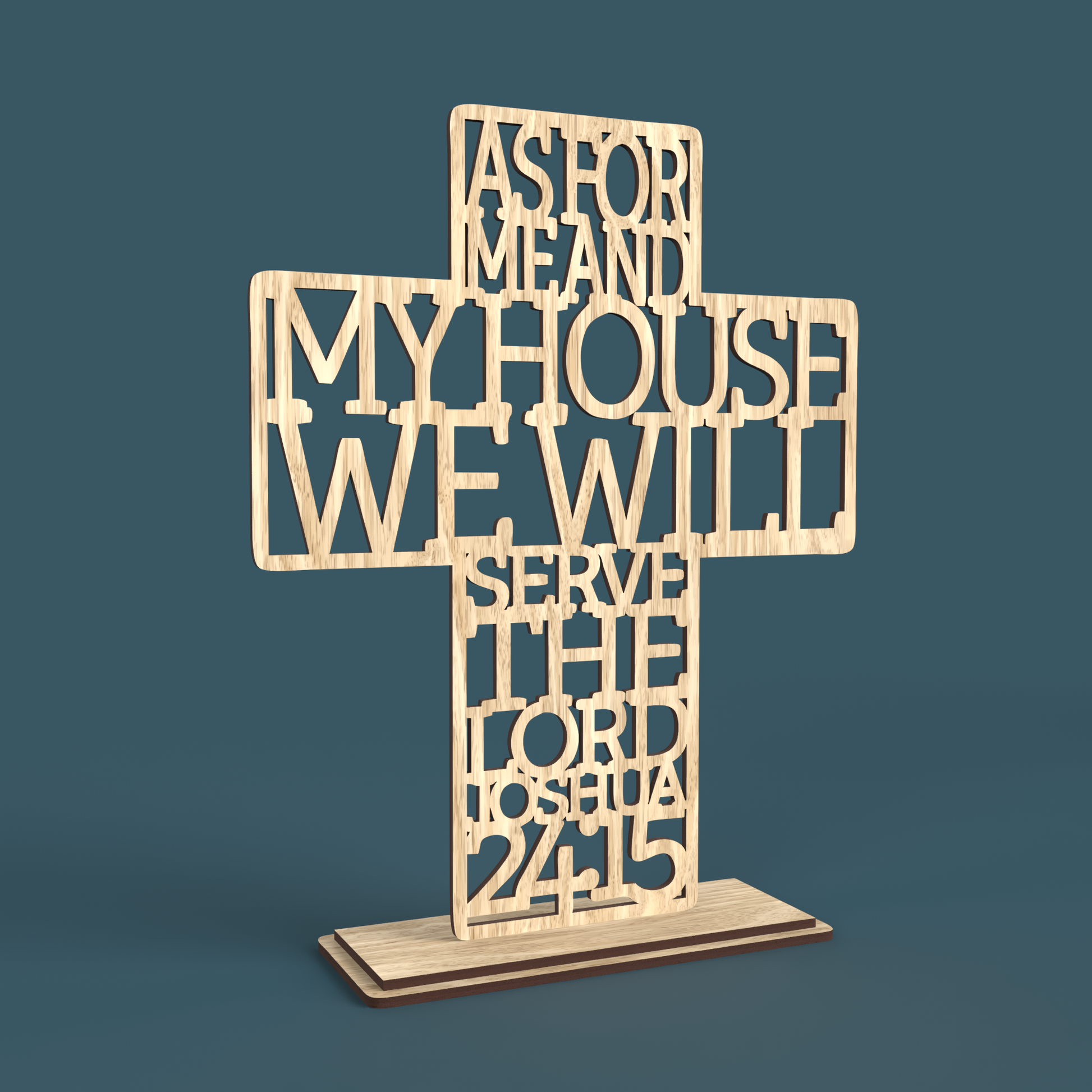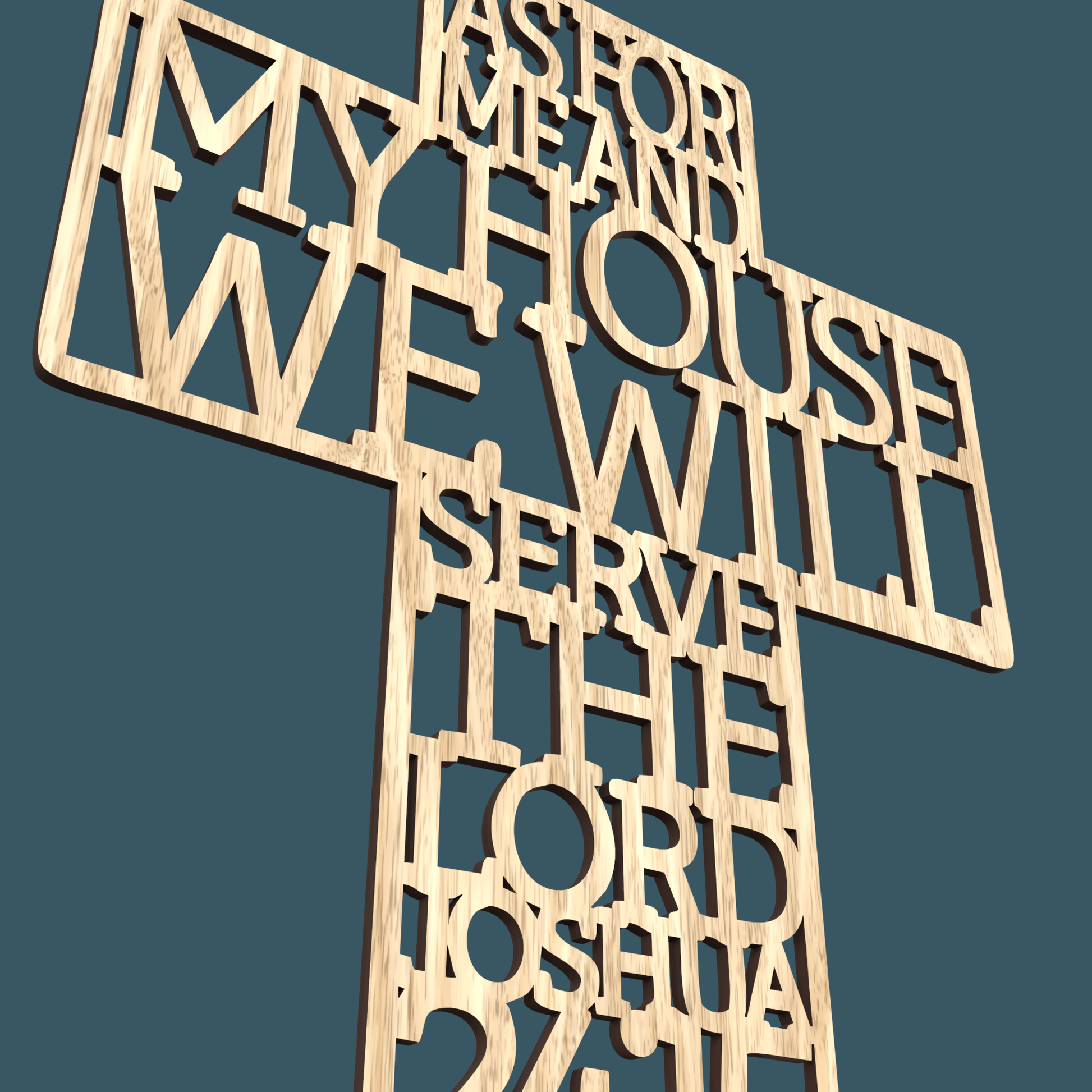 Digital vector files for laser cutting cross with words from Joshua 24:15. Christian or Catholic decor for home, community centers and more. Great design for religious events like baptism (christening), first communion or confirmation; as centerpiece, decor, favor or gift.